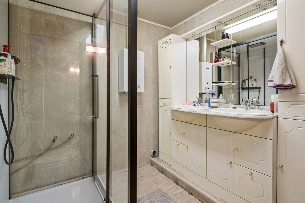 Ruime gezinswoning met uitbreidingmogelijkheden op zolder. Indeling: Gelijkvloers. Hal, leefruimte met zitkamer en salon, ingerichte leefkeuken, ingerichte badkamer, berg/wasruimte en achteraan aangename tuin met achteruitweg voor fietsen. 1ste V: nachthal en twee kamers. 2eV: Zolder: mogelijk extra kamer mits plaatsing vaste trap. Extra: bergzolder boven wasplaats en kelder.