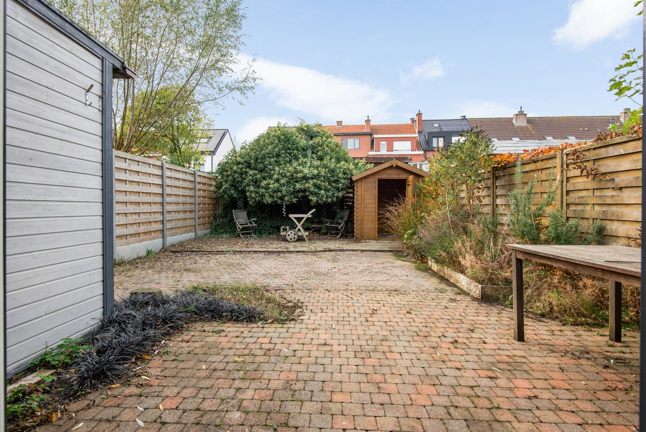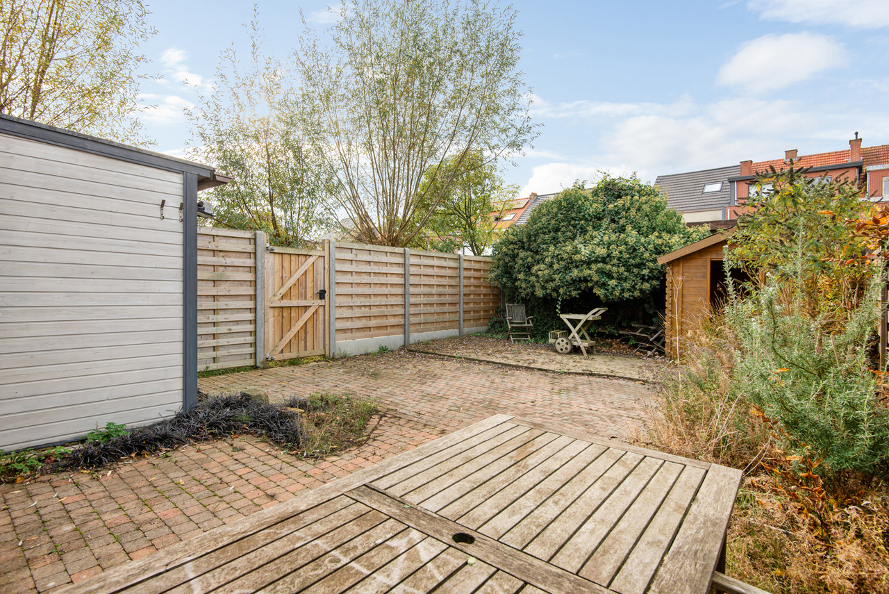 Buiten beschikt de woning over een aangename tuin met tuinhuis en een handige zij-ingang.