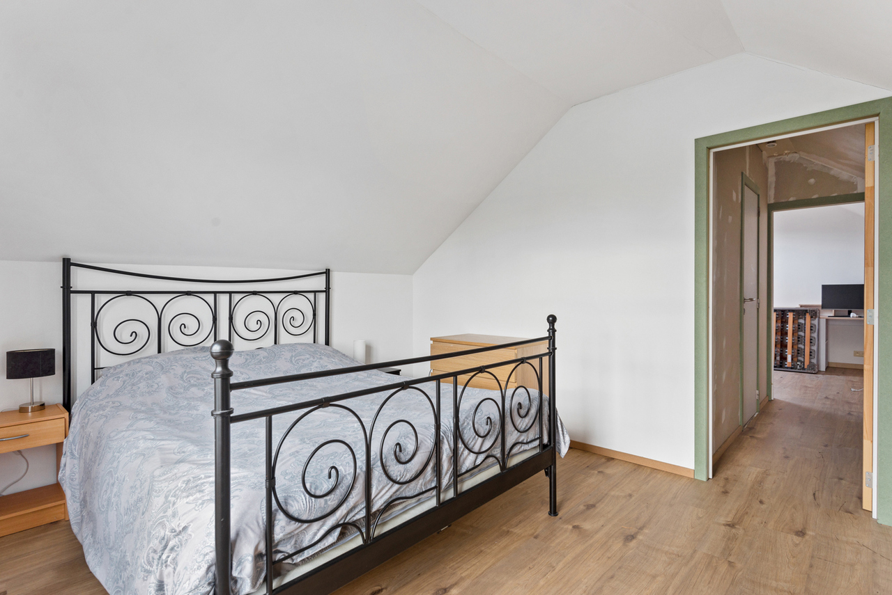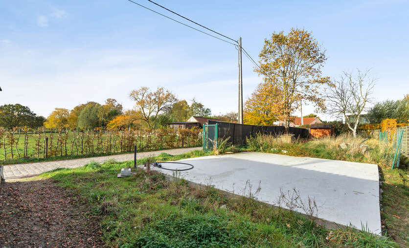Deze verkoop bestaat zowel uit een woning met terras als een nabij gelegen perceel grond met een fundering voor een garage. Indeling: Woning met terras bestaande uit: leefruimte met open keuken, toilet en bergruimte; Op de eerste verdieping: nachthal, ingerichte badkamer en twee slaapkamers. Op het tweede perceel grond kan u een gezellige tuin en garage voorzien.