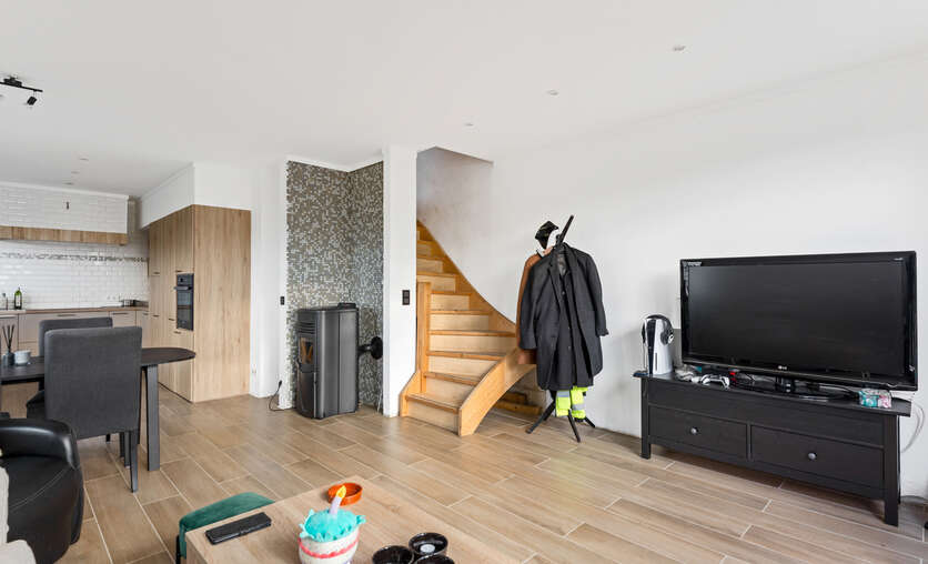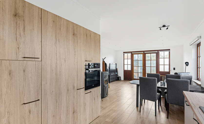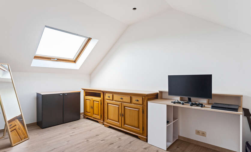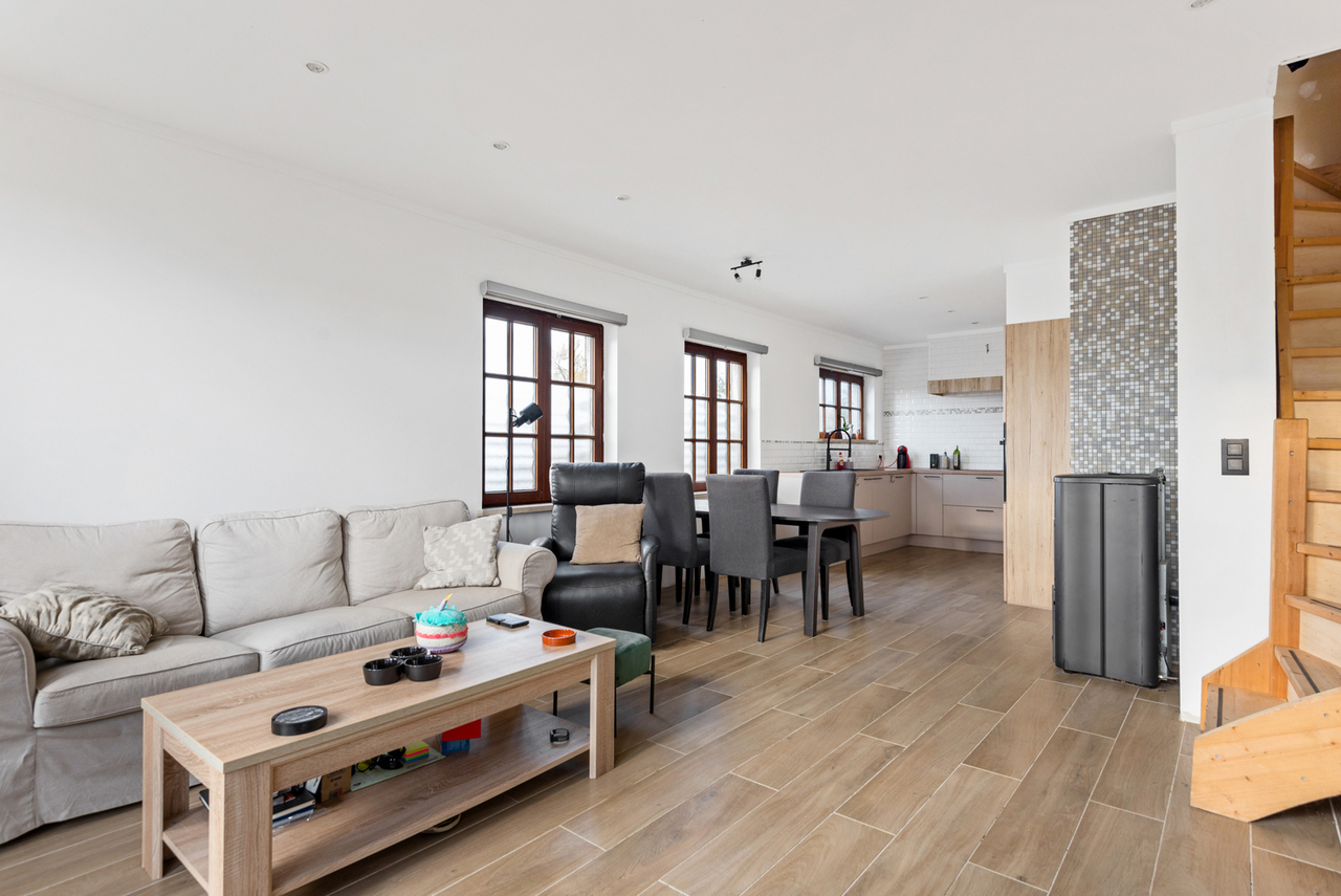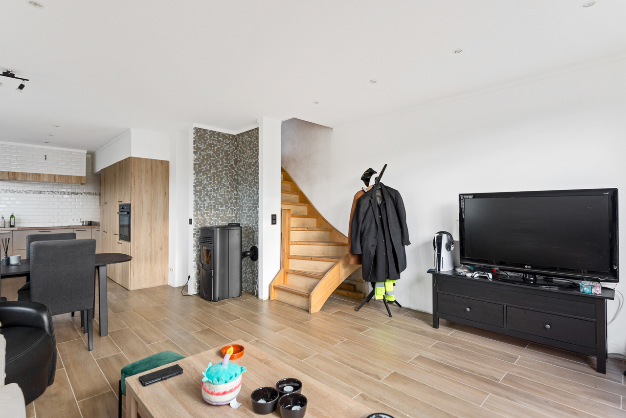 Deze verkoop bestaat zowel uit een woning met terras als een nabij gelegen perceel grond dat als extra tuin kan dienen. Indeling: Woning met terras bestaande uit: leefruimte met open keuken, toilet en bergruimte; Op de eerste verdieping: nachthal, ingerichte badkamer en twee slaapkamers. Op het tweede perceel grond kan u een extra gezellige tuin voorzien.