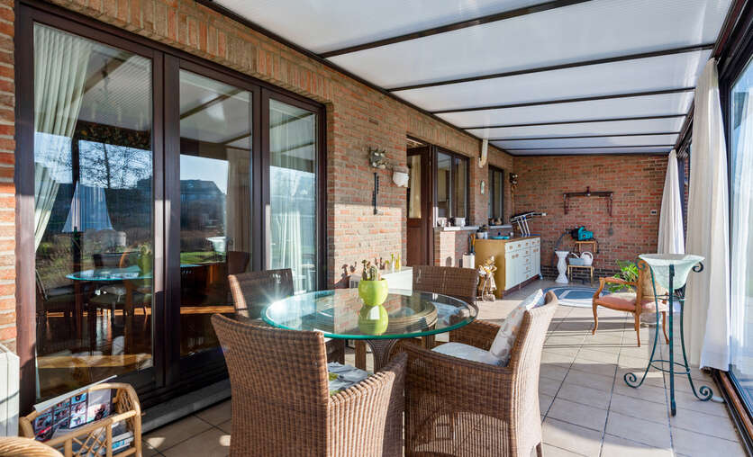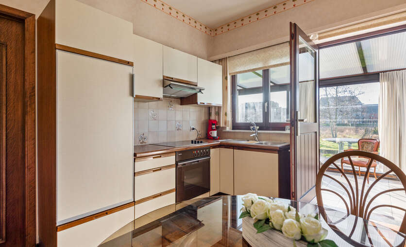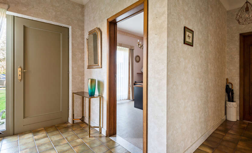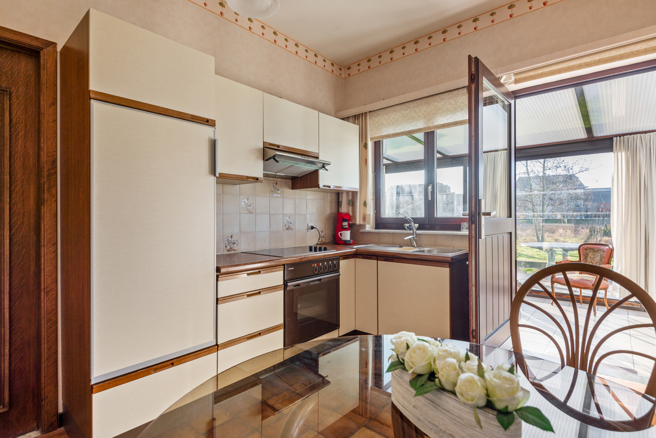 Ideaal gelegen woning met alle leefruimtes op het gelijkvloers. Indeling: hal, drie slaapkamers, garage, badkamer, gastentoilet, keuken, ruime leefruimte en een grote veranda. In de tuin bevindt zich nog een aparte garage. Zeer gunstig epc dankzij de warmtepomp (met grondboring). Centrale ligging met vlotte verbinding nar invalswegen, winkels, openbaar vervoer, scholen en openbare diensten. Landelijke ligging met groen karakter.